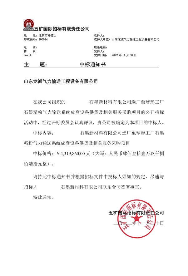 隨著版《石墨行業(yè)準入條件》廢止,2020《石墨行業(yè)規(guī)范條件》的實施,工信部對石墨生產(chǎn)企業(yè)的工藝技術和裝備提出了更全面的要求。新舊動能轉換對于企業(yè)發(fā)展來說既是機遇又是挑戰(zhàn),企業(yè)正確利用新舊動能轉換的機會,將會實現(xiàn)發(fā)展路上的新騰飛。山東龍誠作為一家有著二十多年氣力輸送設備制造和工程設計經(jīng)驗的專業(yè)粉粒料氣力輸送工程公司,助力石墨行業(yè)升級改造,因為氣力輸送本身的環(huán)境友好性,輸送穩(wěn)定性等特點受到眾多石墨企業(yè)工藝升級改造過程中的青睞,自進入石墨行業(yè)以來,合同額每年穩(wěn)步增長,近日又傳喜訊,山東龍誠與五礦集團簽訂石墨新材料選廠至球形工廠年產(chǎn)30萬噸石墨精粉氣力輸送系統(tǒng)成套設備項目。山東龍誠將展開系統(tǒng)設計、設備生產(chǎn)采購供貨、安裝、調(diào)試、人員培訓、試車、驗收、交接等相關的工作,建立性能穩(wěn)定的氣力輸送系統(tǒng)。
