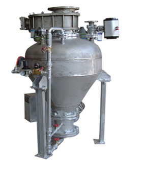 當泵內(nèi)壓力達到一定值時,壓力表或壓力開關(guān)發(fā)出信號,出料閥自動打開,流化床上的物料流化加強,輸送開始,泵內(nèi)物料逐漸減少,此時流化床上的物料始終處于邊流化邊輸送的狀態(tài);