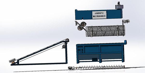 1、YGC-30自動(dòng)拆袋分離機(jī)由皮帶輸送機(jī)、割刀裝置、滾筒篩、中間支架、布袋除塵器、螺旋輸送機(jī)、控制箱共七部分組成。